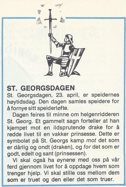 St.Georgs dagen er speiderens «høgtidsdag» verden over og på denne dagen fornyer speidere sitt avgitte løfte.